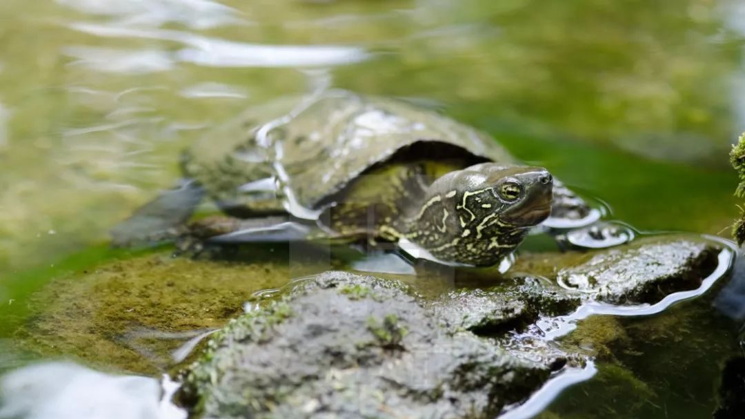 日本石龜全身以青黑色為底色,背甲和頭部夾雜著斑駁的面積不等的黃色斑塊,就像溪流間一塊塊生滿黃鏽的青石,在歲月的洗禮下顯得那樣樸素且有質感。