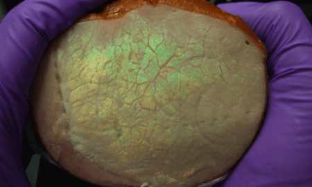 豬腰的肌肉組織在特定角度下出現彩虹。圖片來自參考資料[1]