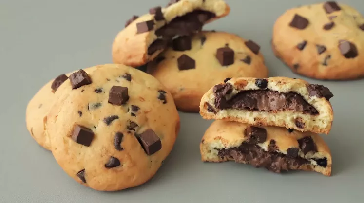 之前的朱古力爆漿曲奇都覺得餡料太少了,這款才是真正的裹餡曲奇,光看裡面這塊朱古力醬的厚度就贏了。