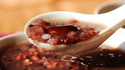 材料:黑米30克、粳米70克、棗(幹)20克、銀耳(幹) 15克、芝麻10克、大豆15克,紅糖適量。